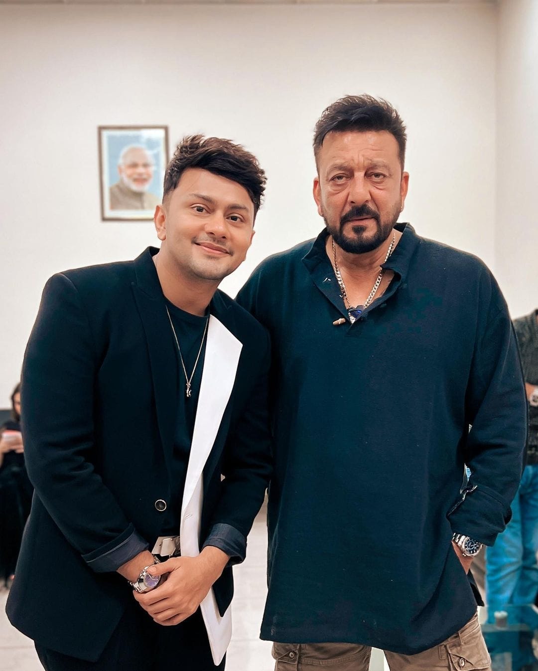 Awez Darbar wearing this statement black suit with a bold white accent, designed by Bhanu Designer. A perfect fit for fashion weeks, premieres, brand launches, and high-profile appearances, Reception.